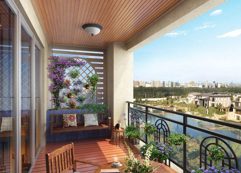 5、喜欢绿色景物的人同样可以在阳台上种上各种各样的绿植盆栽,能实现与大自然亲密接触,敞开式的阳台瞬间变成一个美美的观景台。